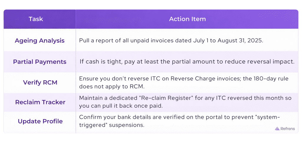 - Mandatory Reversal: You must add the claimed ITC back to your output tax liability in the GSTR-3B of the following month.