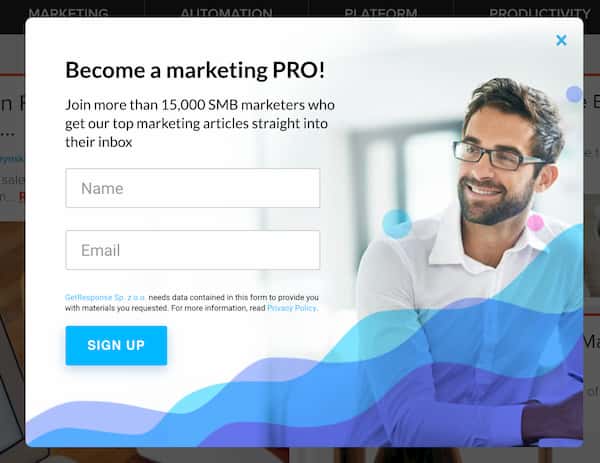 One look at the pop-up and you know exactly what will happen if you share your contact details: You’ll become a “marketing pro.” Who doesn’t want that?